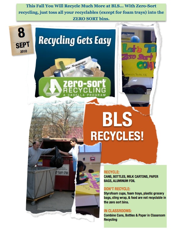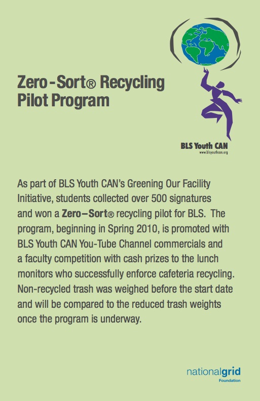 This year BLS Youth CAN students collected over 600 signatures and attended a meeting where they submitted the signatures as part of a successful request to be a school that would have a zero-sort recycling pilot through Casella Recycling for the 2010-2011 school year.