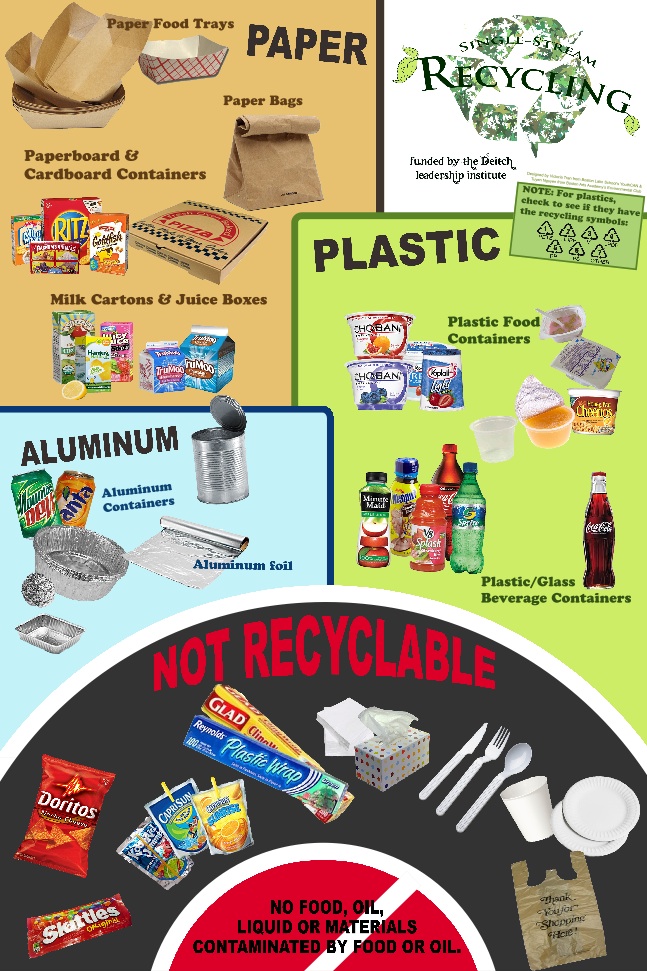 If you have any ideas to help us realize our goals, or if you would be willing to be a “lunch watcher” who helps us with our Lunch Competition by reporting the count of full recycling bins during your lunch, we could really use your help. Please e-mail us using the email address on this page.